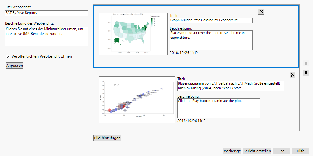 Hinweis: Wenn Sie einen Bericht ausgewählt haben, können Sie auch eine Indexseite erstellen. Die Indexseite zeigt ein Miniaturbild des Berichts. Sie klicken auf das Miniaturbild, um den Bericht anzuzeigen. Webbericht zeigt ein Beispiel hierfür.