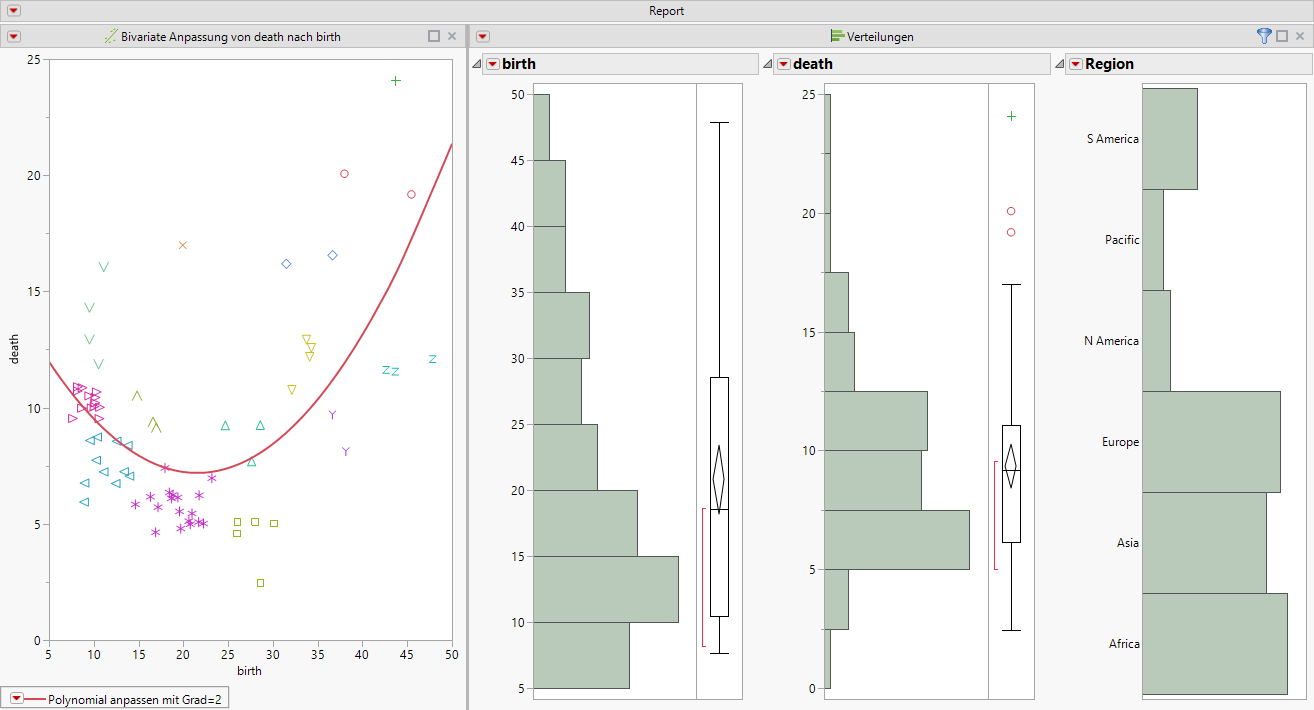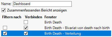 Wählen Sie in der Spalte „Verbinden“ Birth Death - Bivariate of death by birth und Birth Death - Distribution.