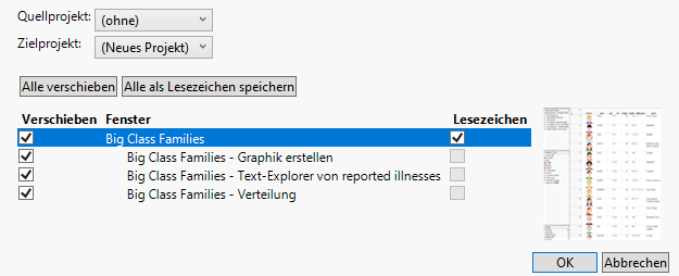 Wählen Sie in einem beliebigen Fenster Fenster > In/aus Projekt verschieben aus.