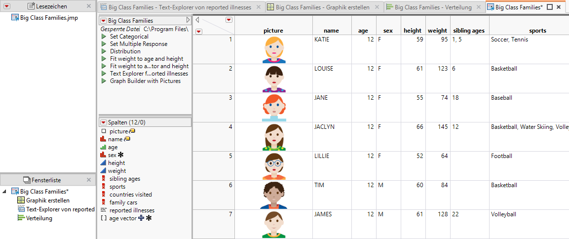 Aktivieren Sie das Kontrollkästchen neben Big Class Families.jmp.