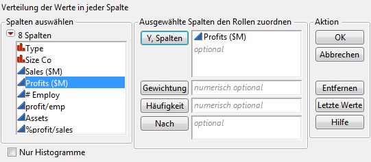 In diesem Beispiel wird die Datentabelle Companies.jmp verwendet, die Daten über Gewinne von Unternehmen enthält.