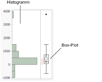 Der Box-Plot, eine weitere grafische Zusammenfassung der Daten. Ausführliche Informationen über den Box-Plot finden Sie im Kapitel Graph Builder im Buch Essential Graphing.