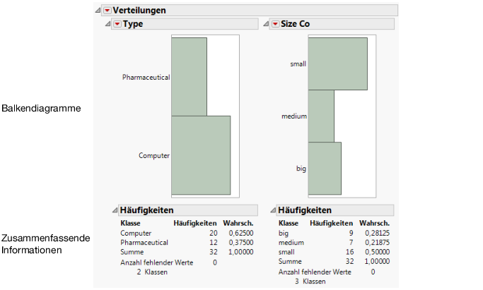 In diesem Beispiel wird die Datentabelle Companies.jmp verwendet, die Daten über die Größe und den Typ von Unternehmen enthält.