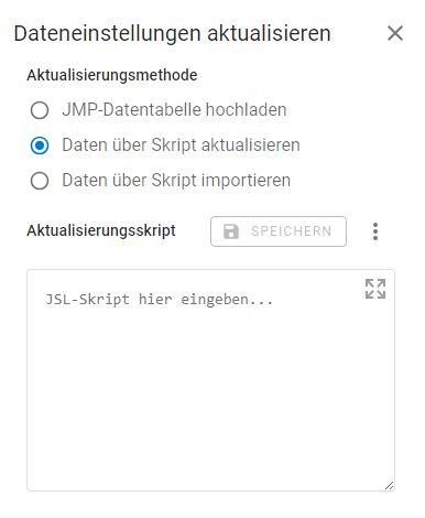 Benutzer können im Arbeitsbereich oder Ordner Datentabellen verwalten (aktualisieren, hochladen, Benutzerdaten zuordnen, ein Importskript erstellen, einen Aktualisierungsplan festlegen).