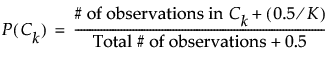 The unconditional probability that an observation belongs in class Ck, P(Ck), is given as follows: