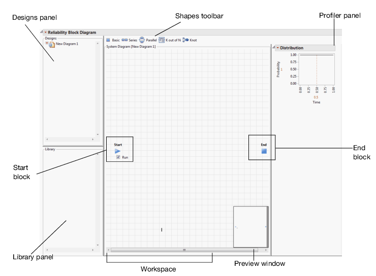 Example Using the Reliability Block Diagram PlatformIn this example, you learn how to create a new Reliability Block Diagram.