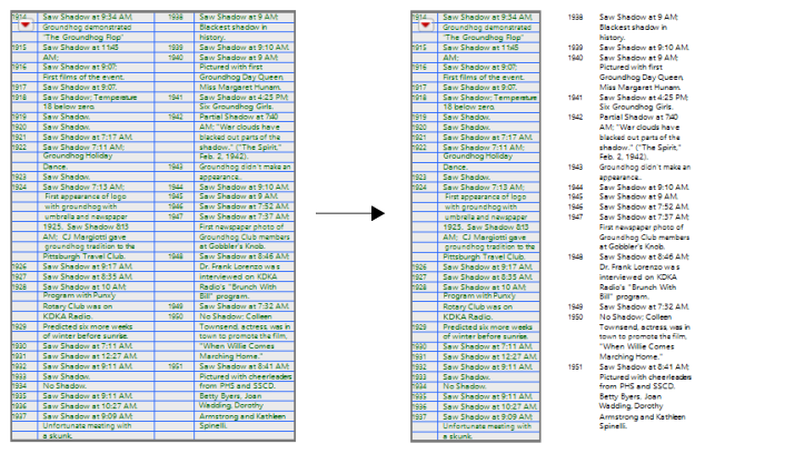 Note: Groundhog Day Predictions.pdf in the Samples/Import Data folder shows a cleaned-up version of the data that is auto-detected in the PDF Import Wizard.