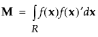 The moments matrix does not depend on the design and can be computed in advance. The row vector f (x)′ consists of a 1 followed by the effects corresponding to the assumed model. For example, for a full quadratic model in two continuous factors, f (x)′ is defined as follows: