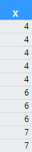 When a column contains missing values, you can replace those values with the value in the preceding cell. For example, if “4, .,., ., ., 6, ., ., 7, .” is selected, the values are changed to “4, 4, 4, 4, 4, 6, 6, 6, 7, 7”.