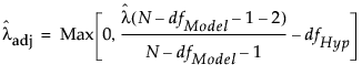 Unfortunately, this adjustment to the noncentrality estimate can lead to negative values. Negative values are set to zero, reintroducing some slight bias. The adjusted noncentrality estimate is