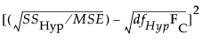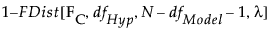 The expression on the right illustrates the calculation of the unbiased noncentrality parameter when a sample size N, different from the study size n, is proposed for a retrospective power analysis. Here, dfHyp represents the degrees of freedom for the hypothesis and dfModel represents the degrees of freedom for the whole model.