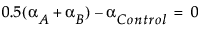 To derive the contrast coefficients that you enter into the Custom Test columns, do the following. Denote the theoretical effects for the four treatment groups as follows: αA, αB, αControl, and αPlacebo. These are the treatment effects, so they are constrained to sum to 0. Because the parameters associated with the indicator variables represent only the first three effects, you need to formulate your contrasts in terms of these first three effects. See Details of Custom Test Example and Interpretation of Parameters in the Statistical Details section.