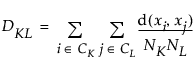 The formulas use the following notation, where lowercase symbols generally pertain to observations and uppercase symbols to clusters: