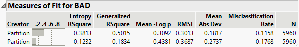 The columns Prob(BAD==Good Risk) and Prob(BAD==Bad Risk) contain the formulas that Informative Missing utility uses to classify the credit risk of future loan applicants. You are interested in how this model performs in comparison to a model that does not use informative missing.