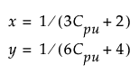 Note: If either Cpu or Cpl is less than -0.6, then it is set to -0.6 in the formulas above. At the value -2/3, the denominator for x assumes the value 0. Bounding the capability values at -0.6 prevents the denominator from assuming the value 0 or switching signs.