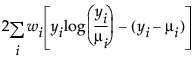 An important aspect of generalized linear modeling is the selection of explanatory variables in the model. Changes in goodness-of-fit statistics are often used to evaluate the contribution of subsets of explanatory variables to a particular model. The deviance is defined to be twice the difference between the maximum attainable log-likelihood and the log-likelihood at the maximum likelihood estimates of the regression parameters. The deviance is often used as a measure of goodness of fit. The maximum attainable log-likelihood is achieved with a model that has a parameter for every observation. Table 12.4 lists the deviance formula for each of the available distributions for the response variable.