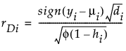 hi is the ith diagonal element of the matrix We(1/2)X(X'WeX)-1X'We(1/2), where We is the weight matrix used in computing the expected information matrix.