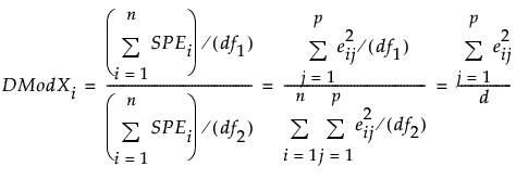 The DModXi value for each of the i observations is plotted on the DModX control chart. The normalized distance to model (DModX) is defined as: