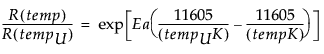 where RU is the reaction rate at use temperature tempU, RU x AF(temp) is the reaction rate at a general temperature temp, and for temp > tempU, AF(temp) > 1