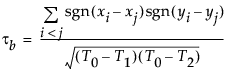 Kendall’s τb coefficients are based on the number of concordant and discordant pairs. A pair of rows for two variables is concordant if they agree in which variable is greater. Otherwise, they are discordant, or tied.