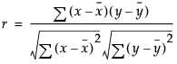 The Pearson product-moment correlation coefficient measures the strength of the linear relationship between two variables. For response variables X and Y, it is denoted as r and computed as follows: