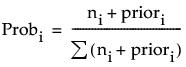 where the summation is across all response levels; ni is the number of observations at the node for the ith response level; and priori is the prior probability for the ith response level, calculated as follows: