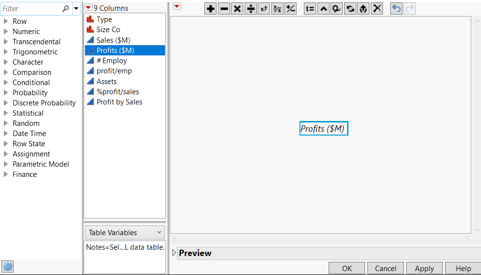 The following example shows how to re-create a formula column in the Companies.jmp sample data table.
