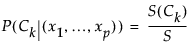The Naive Score formula for a given class Ck, S(Ck), is a variation of the numerator in the expression for P(Ck|(x1,..., xp)) and is given as follows: