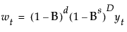 In the case of Seasonal ARIMA modeling, the differencing, autoregressive, and moving average operators are the product of seasonal and nonseasonal polynomials: