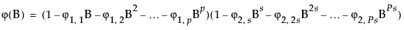 where s is the number of observations per period. The first index on the coefficients is the factor number (1 indicates nonseasonal, 2 indicates seasonal) and the second is the lag of the term.