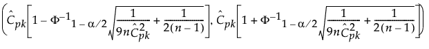 The 100(1 - α)% confidence interval for Cp is calculated as follows: