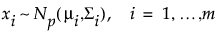 Denote a multivariate distribution of dimension p with mean vector μi and covariance matrix Σi by Np(μi,Σi). Suppose that the xi are m (where m > p) independent observations from such a distribution: