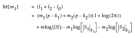 Denote the maximum of twice the log-likelihood function for the subsequent m2 = m - m1 observations by l2, and the maximum of twice the log-likelihood function for all m observations by l0. Both l2 and l0 are given by expressions similar to that given for l1.