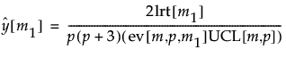 The control chart statistic is defined to be twice the log of the likelihood ratio test statistic divided by p(p + 3), divided by its approximate expected value, and also divided by the approximate value of the control limit. Because of the division by the approximate value of the UCL, the control chart statistic can be plotted against an upper control limit of 1. The approximate control chart statistic is given as follows: