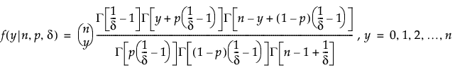 Statistical Details for DistributionsThe distributions fit by the Generalized Regression personality are given below in terms of the parameters used in model fitting. Although it is not specifically stated as part of their descriptions, the Generalized Regression personality enables you to specify non-integer values for the discrete distributions.