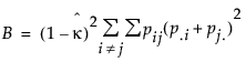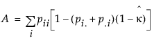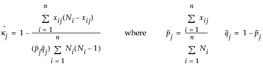• xij = number of ratings on part i (i = 1, 2,...,n) into level j (j=1, 2,...,k)The individual category Kappa is as follows: