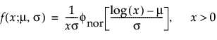 The lognormal family is parameterized by a location parameter, μ, and a shape parameter, σ. The lognormal pdf and cdf are given as follows, where the logarithm is to the base e: