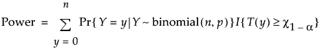 The exact Agresti-Coull method uses the adjusted Wald-based test statistic. JMP calculates power under the two-sided null hypothesis as follows: