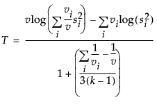 and ni is the count on the ith level and si2 is the response sample variance on the ith level. The Bartlett statistic has a χ2-distribution. Dividing the Chi-square test statistic by the degrees of freedom results in the reported F value.