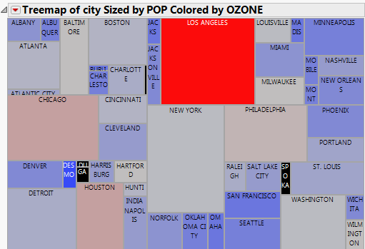 • Categories add labels to the rectangles. You can specify one or two categories. You can show or hide labels using the Show Labels option. See Treemap Right-Click Menu.