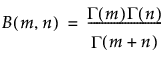 Adds the two parameter Beta function and is written terms of the Gamma function as: