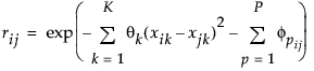 The saved variance formula uses the previously defined parameterization of R, except when the model includes categorical predictors. When the Gaussian Process model includes categorical predictors, the saved variance formula uses the following parameterization of R: