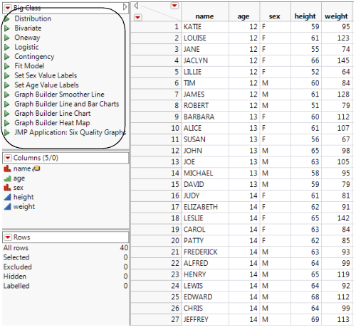 1. Select Help > Sample Data Library and open Big Class.jmp.