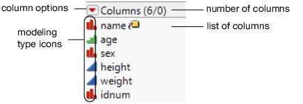 Icons indicating each column’s modeling type (see About Modeling Types in the The Column Info Window section)