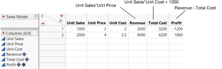 Though the profiler and simulator are designed to work from formulas stored from a model fit, they work for any formula that is stored in a column. A typical application of simulation is to exercise financial models under certain probability scenarios to obtain the distribution of the objectives. This can be done in JMP. The key is to store the formulas into columns, set up ranges, and then conduct the simulation.