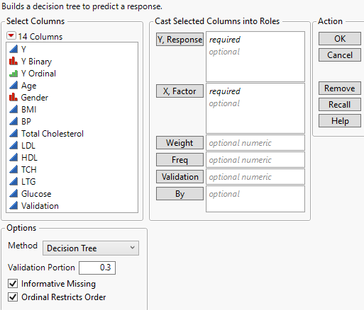 Launch the Partition platform by selecting Analyze > Predictive Modeling > Partition.