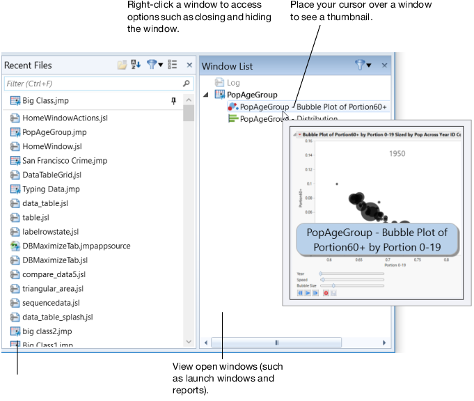 Manage JMP Files and Open Windows