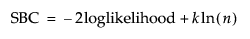 Smaller SBC values indicate better fit. Schwarz’s Bayesian Criterion is equivalent to the Bayesian Information Criterion (BIC). SBC is computed as follows: