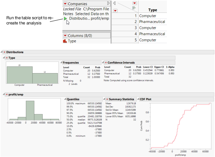 3. To re-create the analysis, click the green triangle next to the Distribution script.