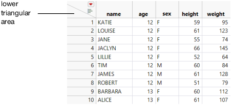 • Hold down the Shift key and click the lower triangular area in the upper left corner of the data grid to select. Click again in the same area to deselect all rows (Figure 4.7).